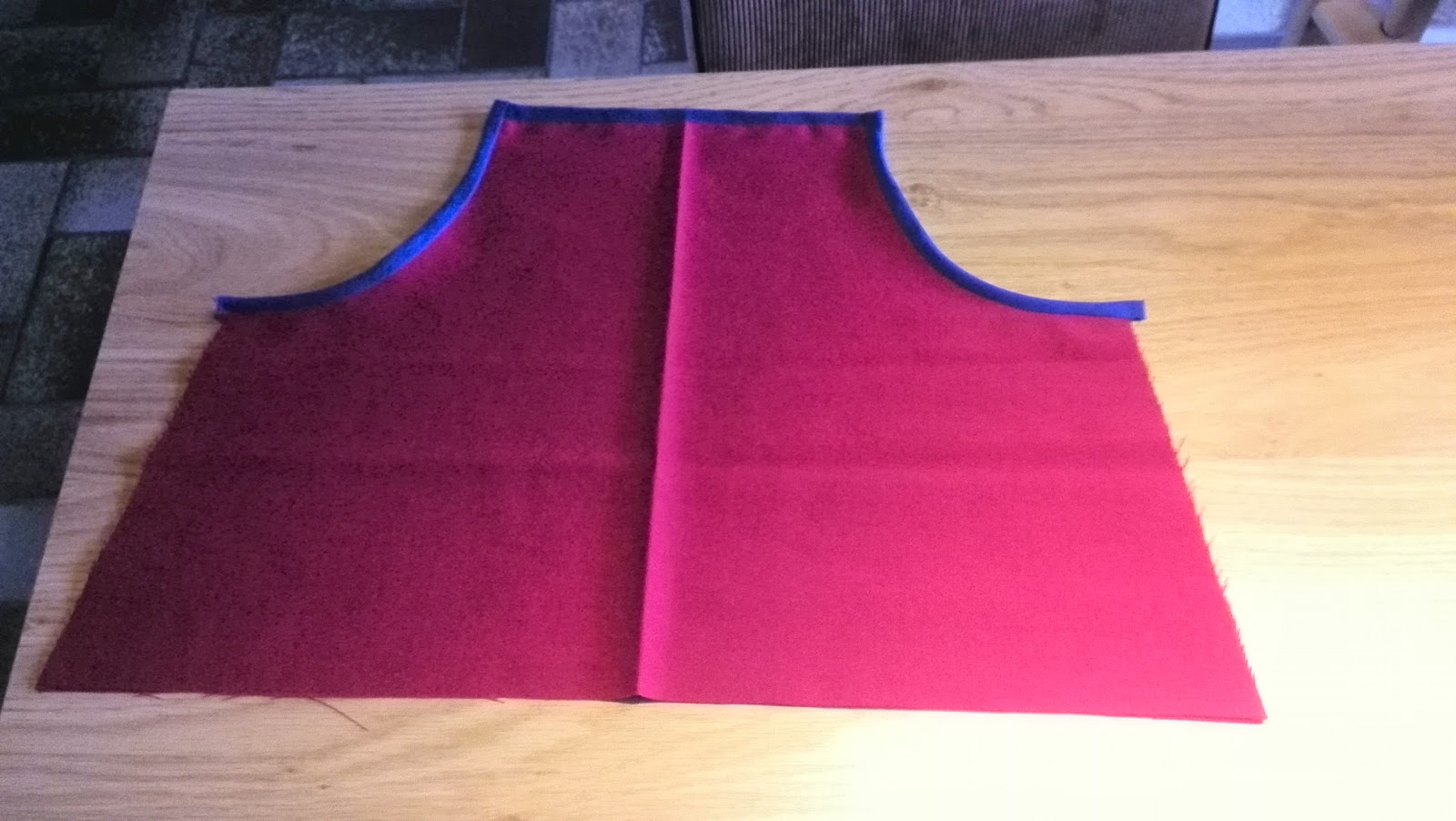 Alle delen samen leggen en vast spelden, zowel bovenkleedje als binnenvoering.
