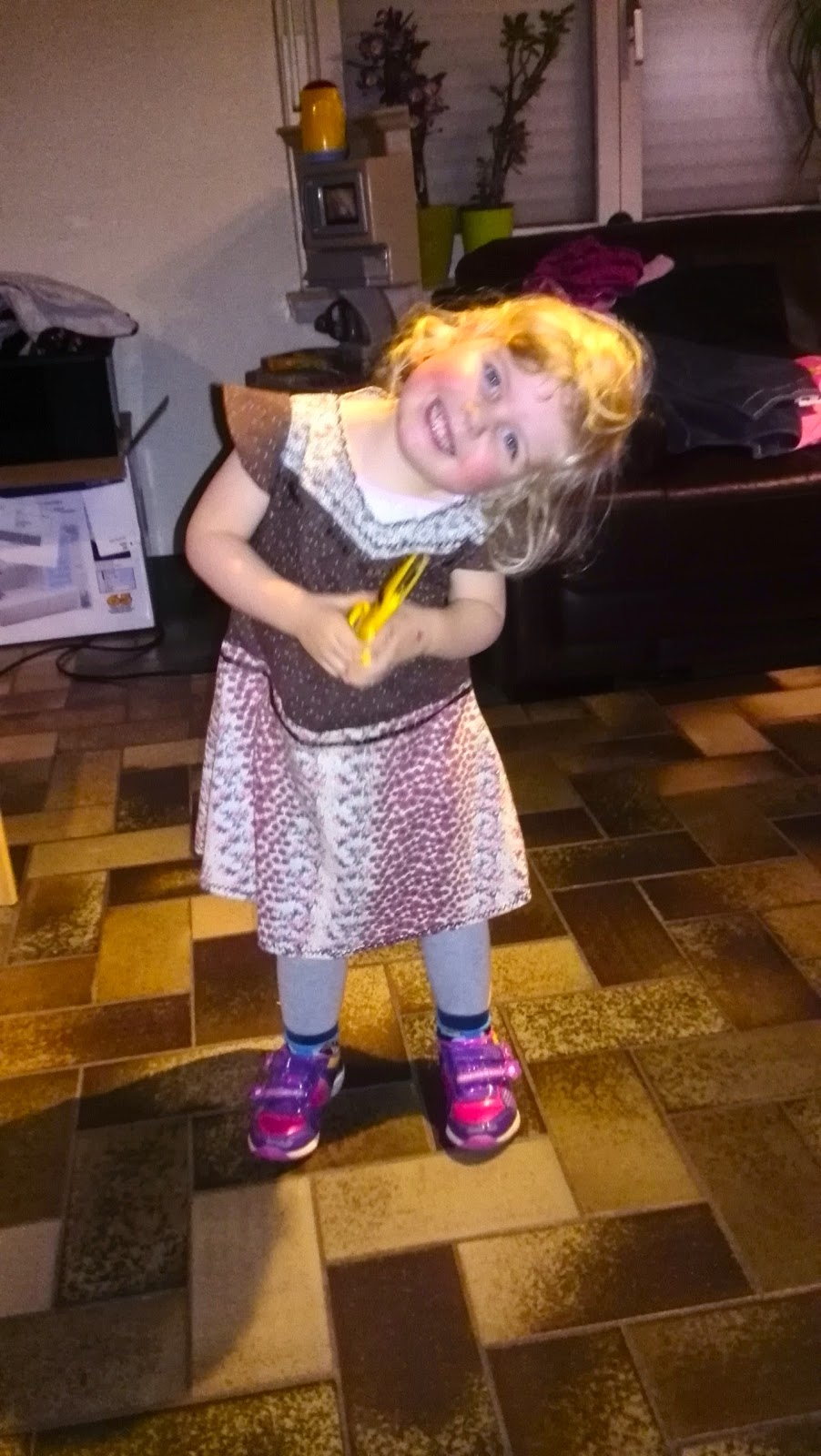 Maar als leek achter de naaimachine had ik dus ook enorme drempelvrees om ergens aan te beginnen met nieuwe stofjes. Dus om te oefenen heb ik eerst wat oude kleren stuk gesneden en een jurkje voor men dochtertje gemaakt. (Dit was volledig zonder patroon, gewoon om mijn naaimachine even aan te voelen)