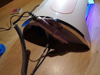 Na heel wat gepruts in de woonkamer met een vijltje en zo’n manicure boortje op batterijen, heb ik besloten iets beter materiaal aan te schaffen. Vooral ook omdat je nagels afvijlen en de gel afvijlen erg veel stof maakt en veel tijd in beslag neemt. Dus ging ik op zoek naar een machine die het makkelijker maakt.