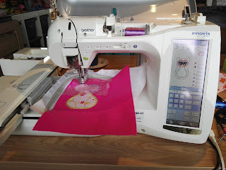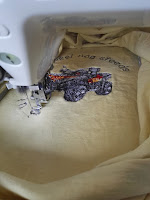 Dan stel ik even mijn innov-is 4000D (2de hands) voor. Dit is een prachtige naaimachine die tevens een borduurmodule heeft. Waar mijn vorige borduurmachine max 10*10cm kon borduren, heeft deze een heel wat groter bereik. Ook de automatische draad afsnijder en inrijger maken het een heel stuk makkelijker om met deze machine grote werken te borduren. Zoals bijvoorbeeld grote namen en logo’s op handdoeken.